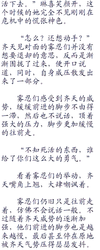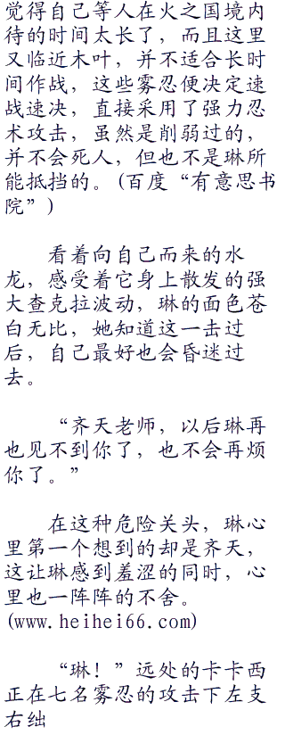 琳看着围住自己的几名雾忍暗部,忍不住心里一阵发慌。她才只是一个中忍,这一次却被四五个上忍团团包围,这一份重视让她极其不适应。