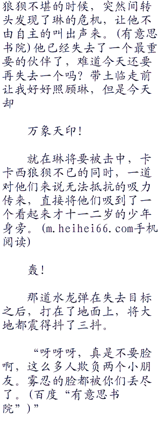 水龙与土壁撞击在一起,传出一阵爆响,水龙的身体被坚硬的土质层撞得身上的水花四散,身体瞬间缩小了一半有余。但卡卡西的土壁似乎还不够坚硬,虽然将水龙抵消了一半,但自身也是在水龙的威力之下迅速垮塌。