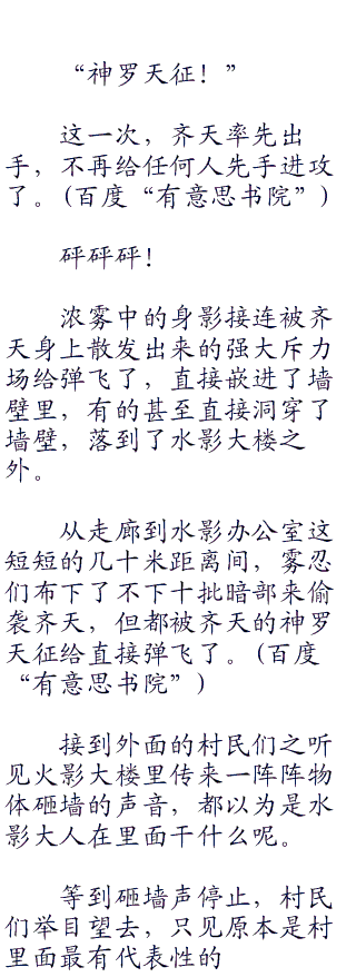 这些雾忍们虽然心惊齐天的实力,但也没有丝毫的犹豫,没有过多的废话,直接就开打了。能够常驻在水影大楼的,都是水影的死忠和心腹,因此不管遇见什么样的敌人,他们都会敢于正面应对。