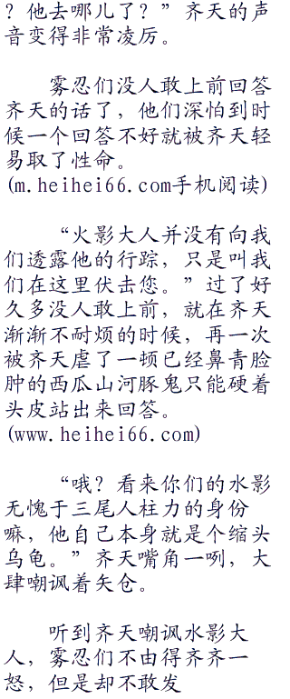“这”雾忍们已经不知道多少次目瞪口呆了。在雾忍们看来本身实力强大无比的大长老,竟然在齐天瞪了他一眼之后,就倒了下去了。是幻术吗?雾忍们面面相觑。