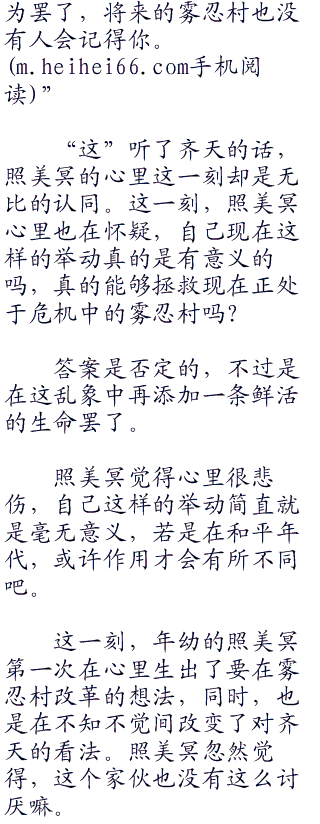 “哼,我管他是不是忍者之神,他欺负我们雾忍村就是不行,雾忍村可是我的家。”被称作照美冥的少女面色坚毅的说道。