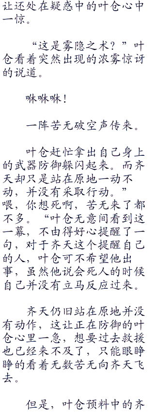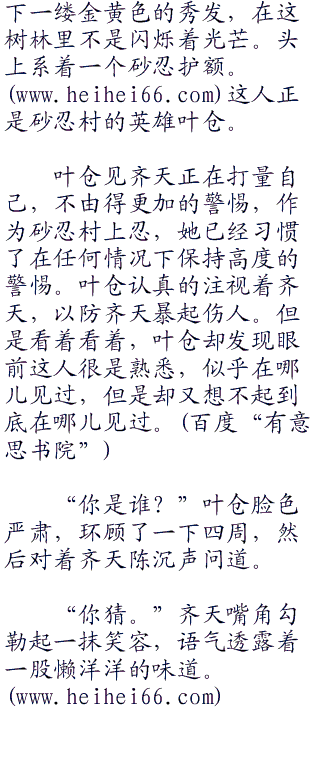 但这些都是表面的,根本吸引不了齐天的注意。真正让齐天觉得有意思的是,在这片树林里还潜伏了大量的雾忍,似乎是要伏击谁。