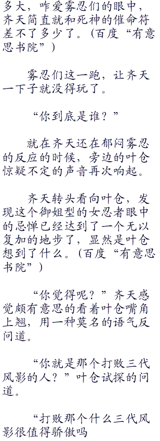 一声苦无碰撞声响起,叶仓只觉得自己握着苦无的手一阵发麻,却是因为刚刚的震惊被埋伏着的雾忍抓住机会险些伤到了自己,幸好叶仓下意识间手一挡拦下了那道危险的攻击。
