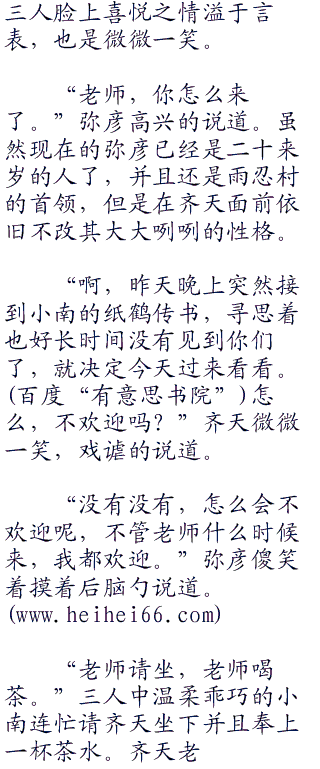 齐天回到木叶的家中,向玲珑详细的说明了现在水无月一族的境况。玲珑在得知现在的水无月一族在血雾政策的影响下早已分崩离析,但是却仍然保留着血脉之后,也就没有再将这件事情放在心上。事已至此,她也不想过多的去干预后辈们现在的生活,毕竟儿孙自有儿孙福。