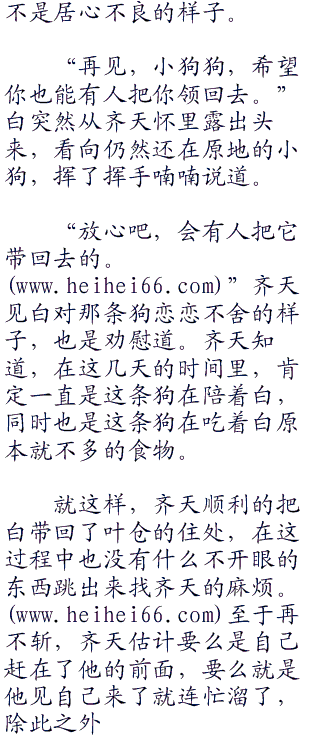 “白白很脏的。”虽然很是留恋齐天温暖的手掌,但是白还是稍稍往后退了两下,然后说道。