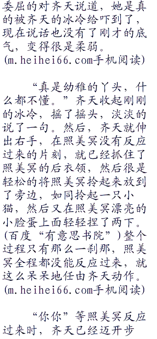 “哼,小丫头,是不是我太纵容你了,所以你才有这么大胆子来拦我的路。”齐天被照美冥拦截下来之后,原本只是一言不语地看着照美冥因为急速跑动而通红地脸蛋。但是让照美冥没有想到的是,原本一直以来都没有因为她说的任何话而生气的齐天,在这一刻竟然说翻脸就翻脸了,前后间突兀的脸色变化,让照美冥一时间没有反应过来。