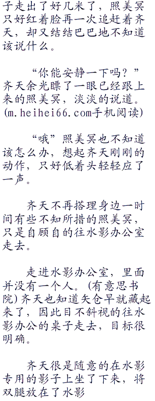 喂,你你不准不准进去。”照美冥气喘吁吁的跑到齐天身前,伸出双手直接拦住了齐天,不让齐天再往前走了。