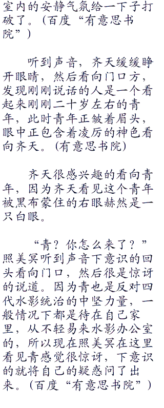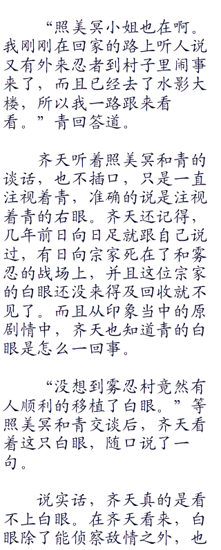 照美冥只是看了齐天一眼,就被齐天突然间的变化吓得呆愣在了原地。照美冥看着齐天,心里忍不住的一阵阵寒意,她不知道是不是自己刚刚的动作惹恼了齐天,她只是觉得自己身为雾忍村的忍者,在这一刻有必要站出来而已。