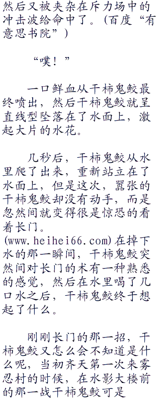 然后,惊讶的干柿鬼鲛来不及躲闪,就已经先是被斥力场击飞,