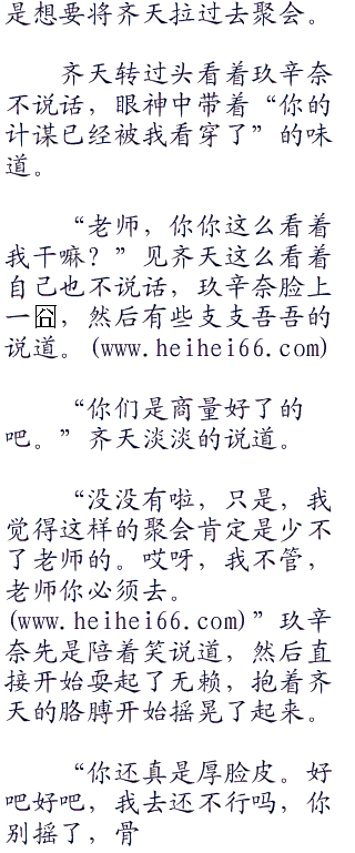 “怎么了?”齐天转过头来看着蹦蹦跳跳着跑过来的玖辛奈问道:“你这个丫头,都二十多的人了,还这么疯疯癫癫的,成什么样啊。”
