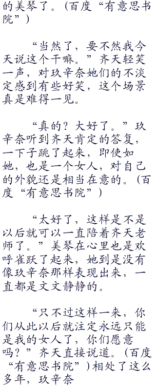 “我不介意的,齐天老师。”美琴连忙摇摇头,表示自己一点都不介意。