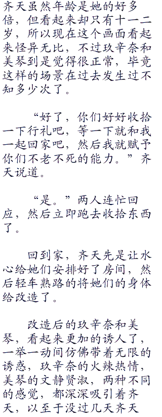 “在将这礼物送给你们之前,我有些话必须要和你们讲清楚。”齐天斟酌了一下语言,然后在玖辛奈和美琴的注视下说道。