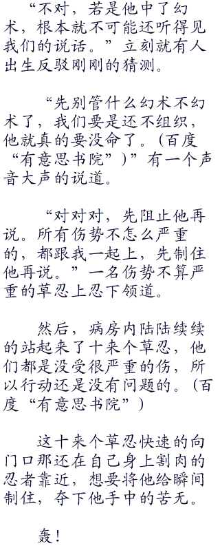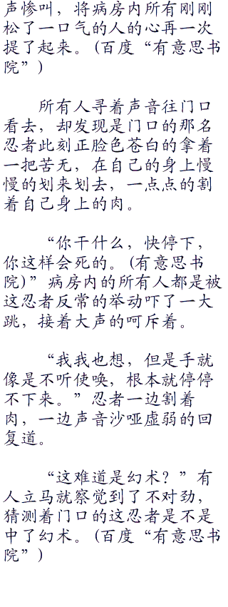 一些亲眼见证了一切的草忍伤员在很长一阵的震惊过后,很没有见识的惊声尖叫了起来。