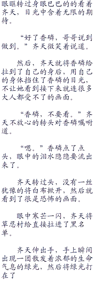 路过门口的时候,齐天看了看仍旧处于震惊恐惧中的那名将香磷抓到这里来的忍者,眼中闪过一丝寒芒,然后眼中一抹猩红浮现又隐去。走过这名忍者,齐天不再去看他,而是随着香磷越走越远。