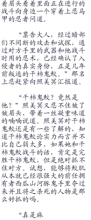 “照美冥大人。大事不好呃”照美冥刚刚出现在这个刚才一直在大