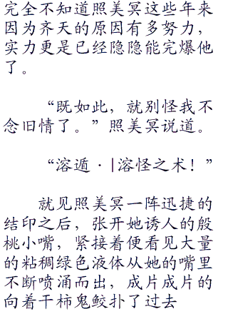“被人小看了呢?”干柿鬼鲛见照美冥并没有使出她的血继限界,顿时觉得心里很不爽。