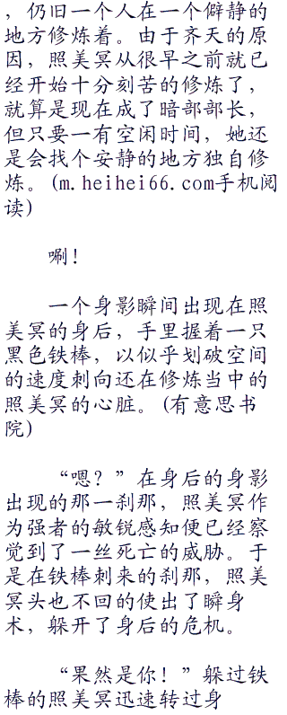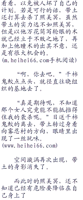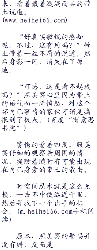 “是,大人。”带着面具的暗部应了一声,赶紧退下去去完成照美冥交代的事情了。