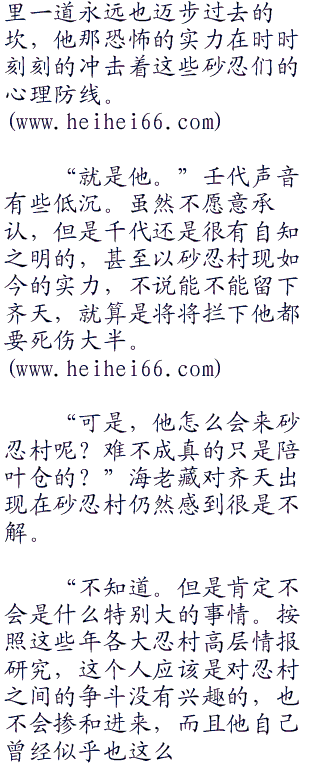 可能对于现在这一代的砂忍们来说,齐天的名字对于他们来说很是陌生,但是只要是曾经参加过二战至今还存活的砂忍们却再清楚不过了。对于这些砂忍们来说,齐天简直就是他们心