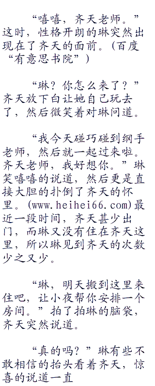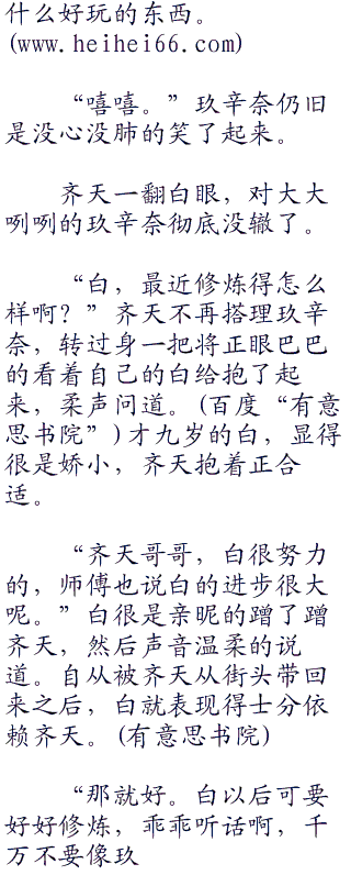 “哈哈,齐天老师,我正在和白闹着玩呢。”玖辛奈嘻嘻笑道。