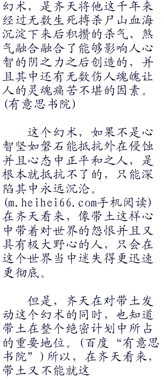 带土所中的那个幻术,是齐天近几年闲来无事的时候所创的。齐天将这个幻术命名为血狱,一个一点也算不上清新脱俗的名字。