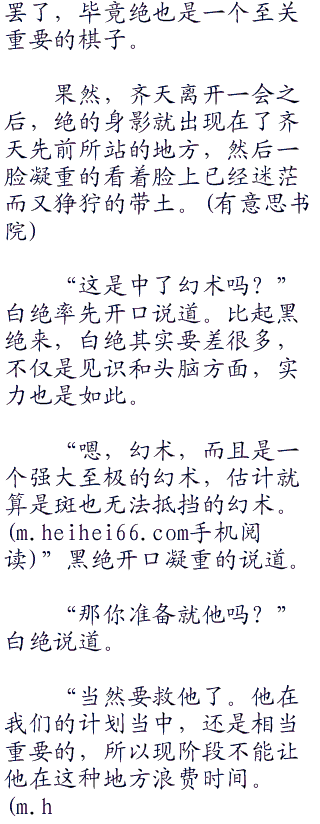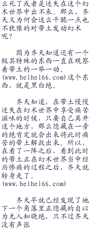 而在带土还迷失在幻术世界的时候,齐天却仍旧站在带土的面前不远处正冷眼看着带土。在看到带土脸上迷茫的神色越来越明显之后,齐天冷哼一声,不再管带土的死活,径直离开了这里。