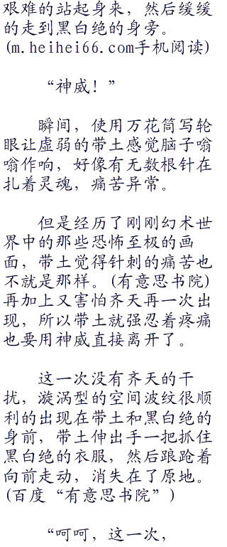 “我我知道了。刚刚真是要多谢你了,否则否则就算是这个幻术不能对我的身体造成伤害,我估计吓也要吓死了。实在是实在是太恐怖了,这么吓人的幻术他到底是怎么弄出来的,不仅不仅有各种专吃魂魄的东西,竟然还有所谓的无间地狱”带土呼哧呼哧的说道。