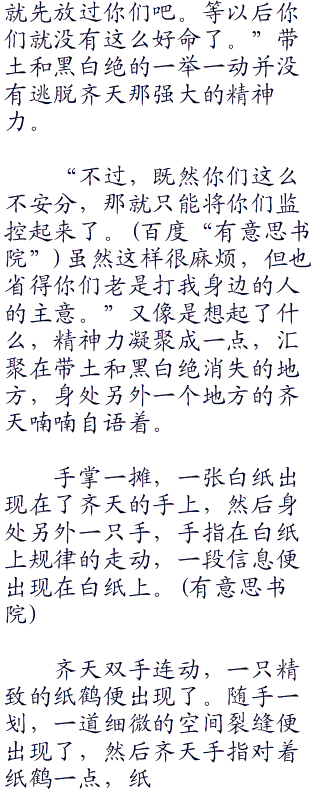 “以后,任何有关于那个人的事情,你都不要再试图去触怒他了,知道吗?刚刚为了救你,我这半边身体可是受到了很严重的创伤诶,现在的伤势可是一点也不必你弱啊。以后再出现这样的事情,我都不知道还能不能就你了。”白绝有些阴阳怪气的说道。