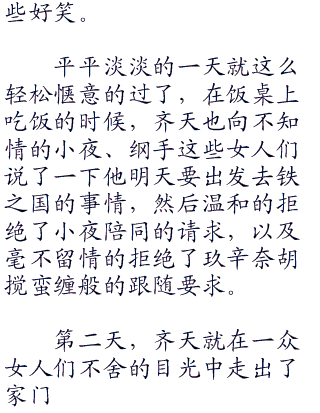 在木叶,齐天所住的这个地方,已然成为了村民们心中最神秘的地方。村民们不知道这个地方到底住着谁,以至于三代火影曾经强制性的下令将这附近的居民全部迁移走了。而且,若是有一些心怀不轨或是胆大包天的人想要一探究竟的话,只要他们走到靠近这个地方一百米的时候,他们心中那神秘的地方就会从眼前消失。所以,多年以来,木叶的居民们也就没有了一探究竟的想法,一直以来安安分分,就算是要路过这个地方,也会绕着道走。