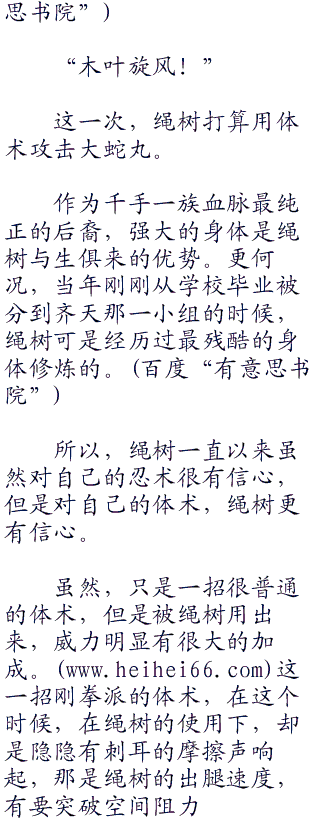 “要打就打,我还要回木叶呢,可不想在这里继续和你浪费时间。”绳树原本淡定从容的表情瞬间一沉。