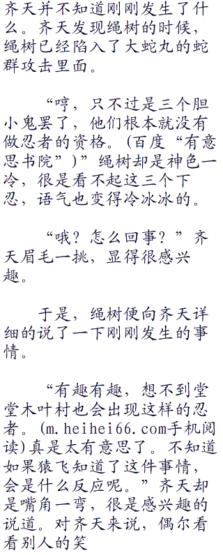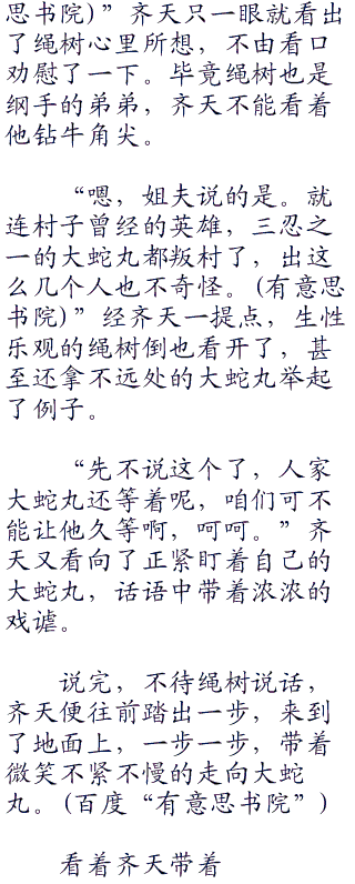 不爽归不爽,救人归救人,齐天还是要就绳树的。否则,绳树要是在这里出了什么事情的话,被纲手知道,还不知道纲手要怎么闹腾呢。