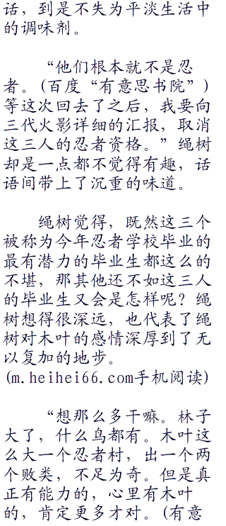 而随着地面的变化,那一大片定住身子的蛇一下子掉进了沼泽地里面。忍术的效果过去,那一大片的沼泽地又重新变成了土地。所有的蛇一下子就消失了,仿佛根本就没有出现过,连带着刚刚绳树释放忍术在地面造成的痕迹也消失的一干二净了。