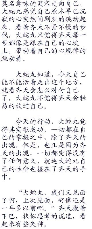 “嘁。和你姐姐齐名?他大蛇丸也配?我告诉你,现如今你姐姐的实力在我的调教下可是强得没边,区区一个大蛇丸,你姐姐一只手就可以解决无数只。”齐天却很是不屑,眼角的余光看了站在不远处不敢有丝毫动作的大蛇丸一眼。