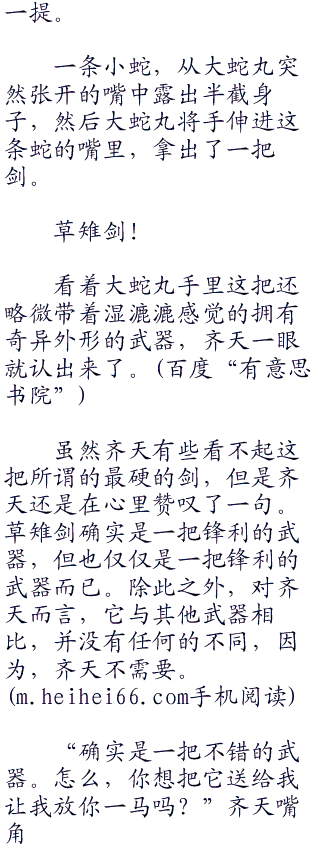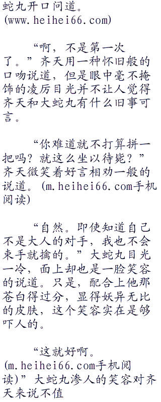 “呵呵。”大蛇丸笑了笑没有说话,他知道齐天这是在嘲笑他。