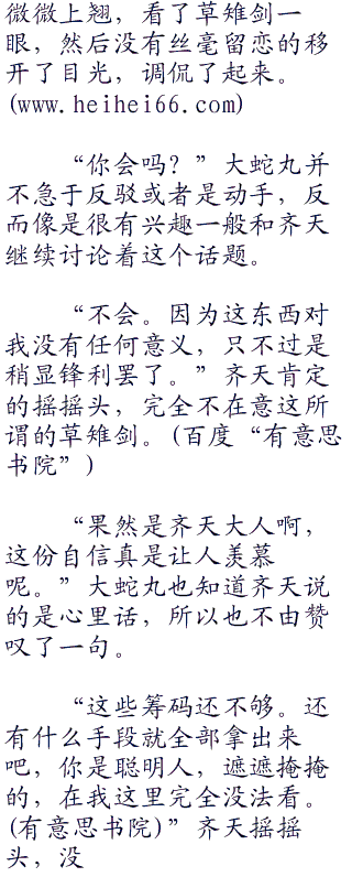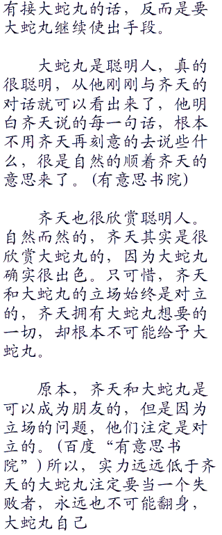 “呵呵,齐天大人不也一样吗?”大蛇丸笑了笑说道,沙哑的嗓音有些刺耳。大蛇丸这句话的意思显然和齐天说的不一样。