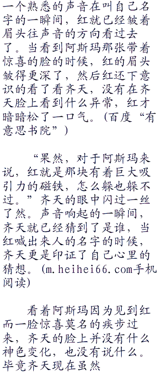 “唉”齐天和红看到红豆这不堪的样子,对视了一眼,只能同时叹息了一声,不再去管心思早就飞到丸子身上去的红豆。