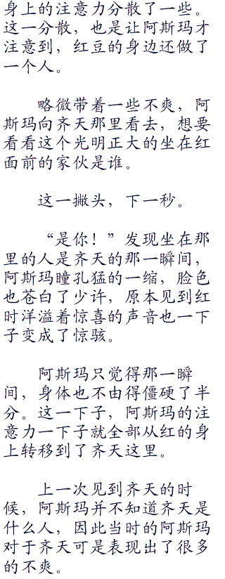 等上忍的晋升考核结束之后,齐天和红以及红豆走在回去的路上,红豆一边蹦蹦跳跳的走在齐天和红的前面,一边一脸兴奋的要红请客吃东西,浑然忘了自己刚刚赌输给了齐天。