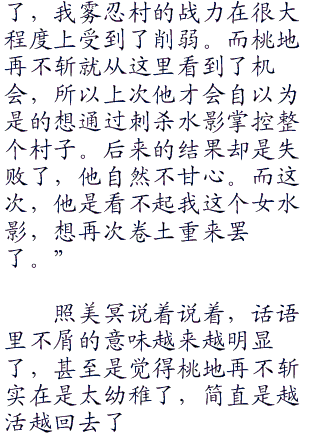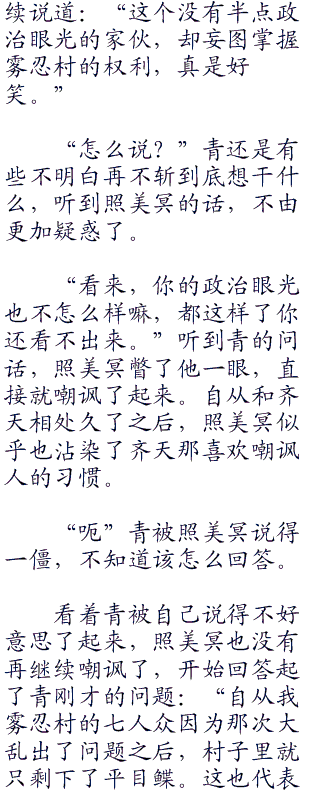 自从成为了一村之影后,照美冥就被束缚在了这间小小的水影办公室内,整日里处理着没完没了的文件。