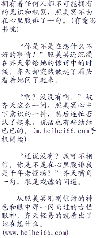 “这”照美冥一愣,想不到齐天真的指出了自己没有看出来的疑点。看着一脸淡然的齐天,照美冥一时间有些不知道该说什么了。