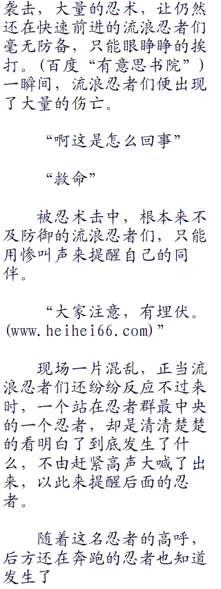 两拨人。一拨往雾忍村的放心奔去,一拨往海边的方向奔去。