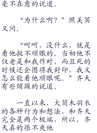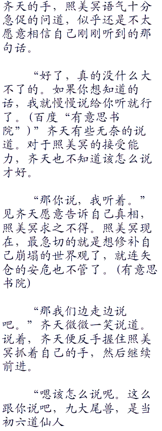 齐天微微一笑,意味深长的说道,引导着照美冥的思维方向,渐渐的往真相上面靠近。