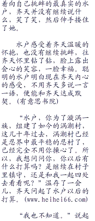 接着,齐天又和小南聊了一阵天,从小南的口中简单的了解了一下晓组织当前的情况。