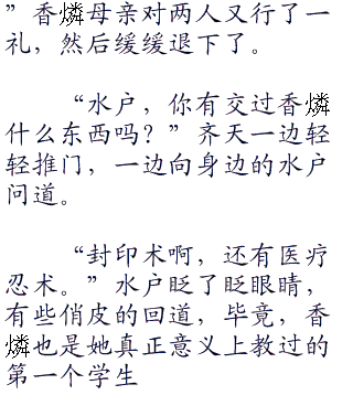 好好安抚了水户有些激动的情绪之后,齐天便扯开话题,问起了漩涡香燐的情况。