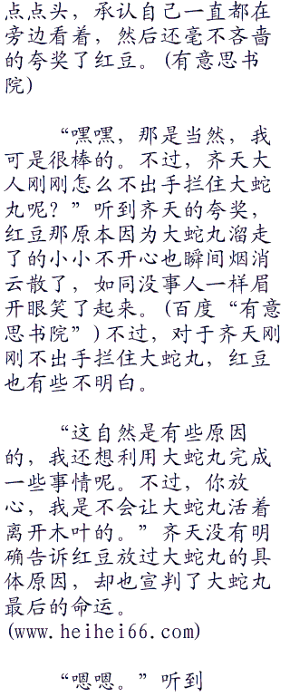 “是啊,都看到了,我家红豆可真是太棒了,连三忍之一的大蛇丸都被你给揍了。”齐天