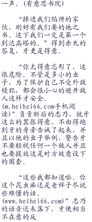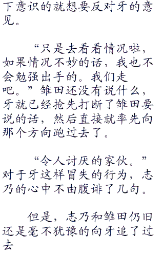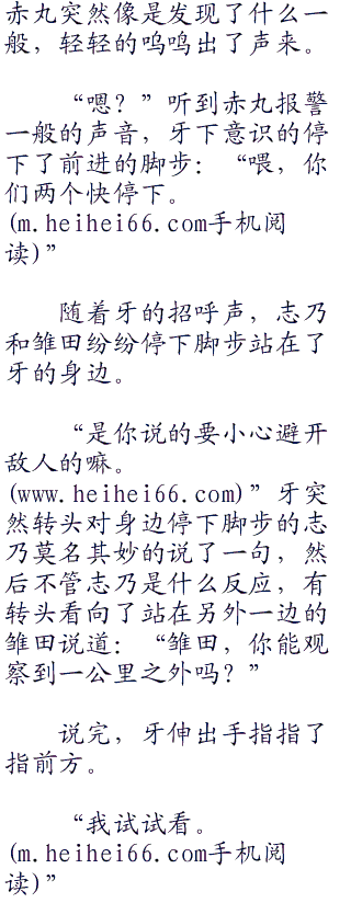 奔跑在最前方的牙,更是一边跳着,一边嘴里不停的叫嚣着:“啊哈,生存游戏就应该在这种地方嘛,对吧,赤丸。”