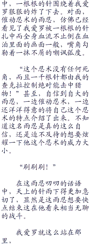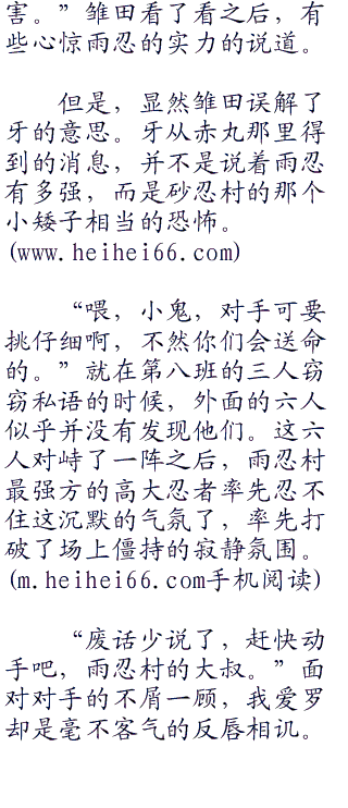 “那个小矮子,居然找那些家伙的茬,他到底在想什么?”牙脸色凝重的看着砂忍一方站在最前面的我爱罗,又看了看另一方人高马大的雨忍村三人组,搞不明白这个小矮子到底是发的什么疯。