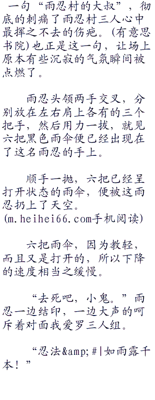 当三人一一伸出头来之后,便在前方的那块空地之中发现正有六人,一边三人的对峙着。