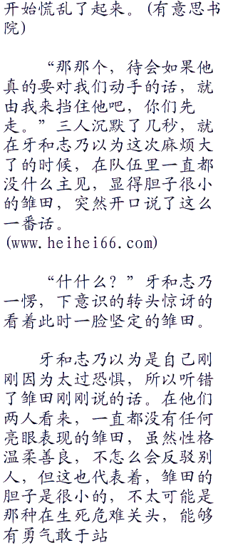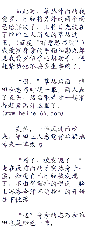 “我我动不了了”雨忍在沙子里一边挣扎,一边大声的叫喊了起来,企图用叫喊声提醒身后的另外两名雨忍来救他。