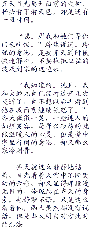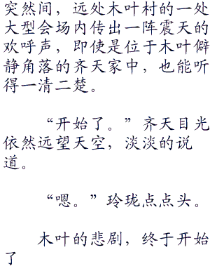 “齐天哥哥,今天是中忍考试的决赛,你要和我一起去看吗?”