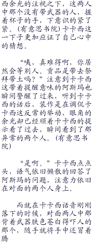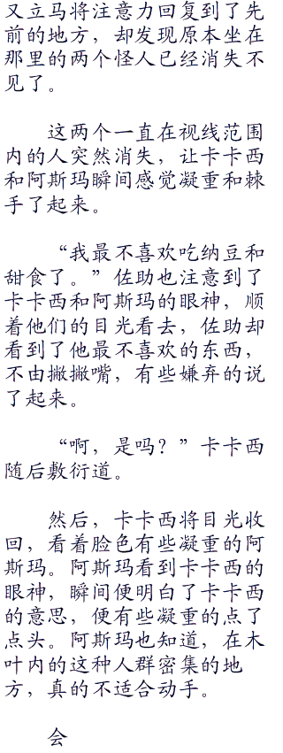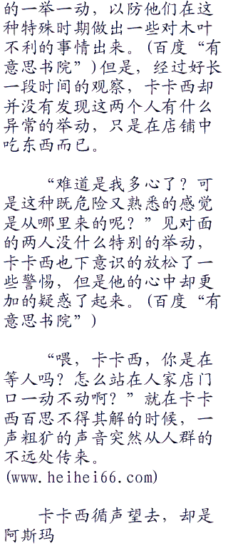 于是,从发现这两个人开始,卡卡西便一直站在这里观察着面食店中的两人,时刻注意着两个人