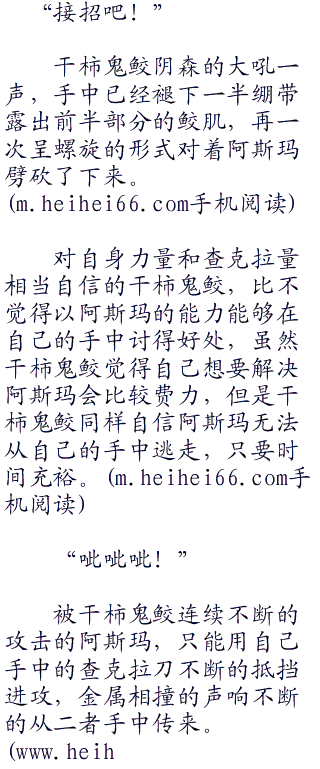 “战斗的时候还敢分神,你是在找死吗?”干柿鬼鲛见一直被自己压着打的阿斯玛这个时候竟然将他的注意力转移到了别处,心中原本就相当不满的干柿鬼鲛更加愤怒了起来。